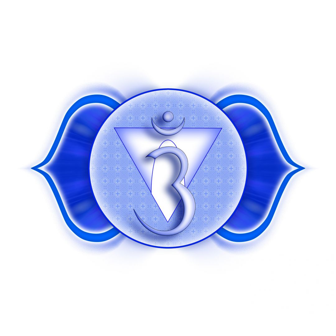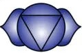| Symbolische Form | Sechsundneunzigblättriger Lotos, weil gebündelt erscheinen sie wie 2. Die beiden Blütenblätter rechts und links symbolisieren Ida und Pingala, die Mond- und Sonnenenergie, die in diesem Chakra zusammenfliessen. Der Kreis in der Mitte des Chakras symbolisiert Shoonya, die Leere. In der Mitte des Kreises ist ein nach unten gerichtetes Dreieck, es symbolisiert Kreativität und Manifestation, bzw. Shakti (schöpferische Lebenskraft). |